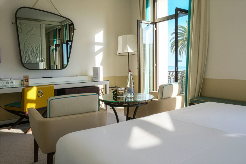 Von Ihrem Balkon aus lassen Sie sich von der Schönheit des Mittelmeers und der Ruhe unserer Gärten verzaubern. Mit 34 m² Eleganz und Komfort bestechen diese hellen Zimmer durch ihre lebendigen Farben und Möbel im Stil der 1920er-Jahre.