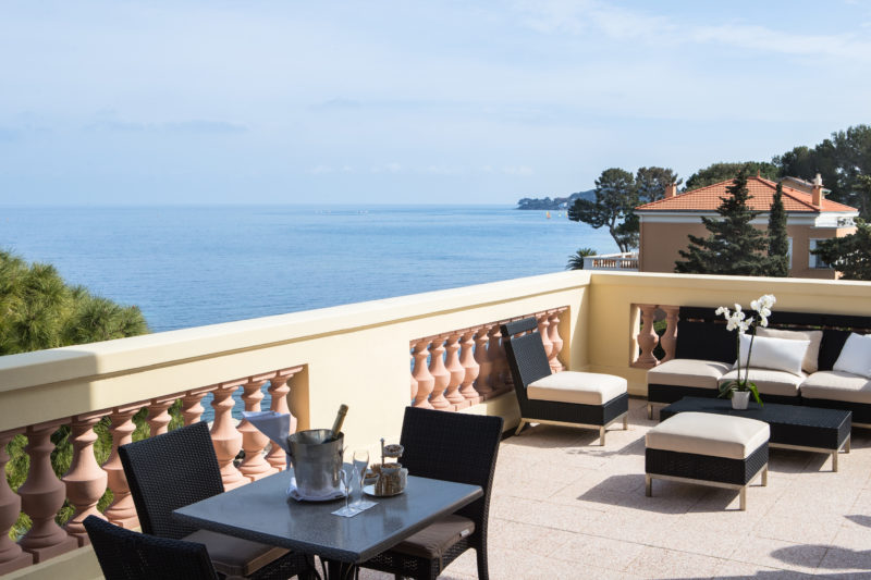Von Ihrer Terrasse aus können Sie sich von der Schönheit des Mittelmeers und der Ruhe unserer Gärten verzaubern lassen. Mit 45 m² Eleganz und Komfort begeistern diese lichtdurchfluteten Zimmer durch ihre lebendigen Farben und Möbel im Stil der 1920er-Jahre.